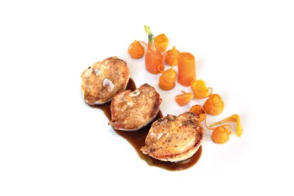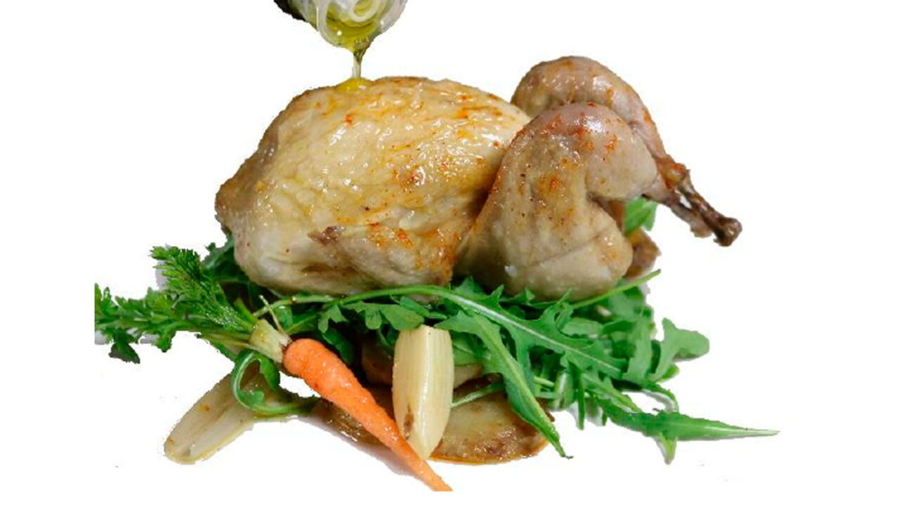 Pechugas de Codorniz con reducción de miel y soja acompañado de calabaza y zanahoria