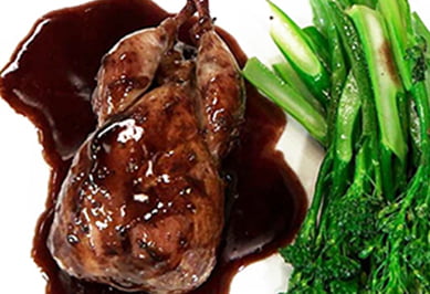 Muslitos y pechugas de codorniz con soja, miel y limón
