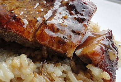 Ingredientes3 Magrets de pato150 gr arroz300 ml agua1 ramita romeroCurryOpcional: Salsa Pad ThaiEnel...